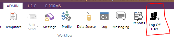 2. Via the Admin menu we can see an Icon for Log Off User: